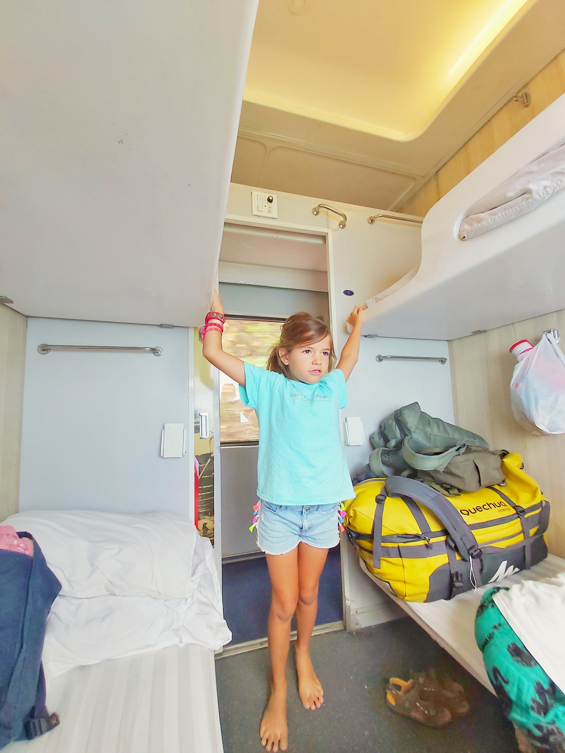 El viaje fue muy agradable, los niños durmieron muchísimo a veces un poco de ruido con las vías, pero no se si es que estábamos muy cansados pero dormimos muy bien todos.